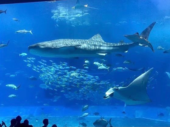 美ら海水族館はジンベイザメを中心に様々な魚たちが雄大に泳いでおり、時間を忘れてずーと見ていました。