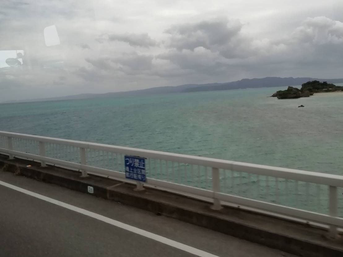 次、古宇利大橋で35分停車時間があります。このとき曇りがなくなり日差しが出てきたおかげて海もビーチも超きれいでした。自分は靴を抜いて浅いところで歩いてみました。11月下旬なのに全然寒くない!ヤドカリもたくさんいるので、本当にたのしかった。ぜひとも素足でビーチに歩いてみてください。ヤドカリを探してみてください