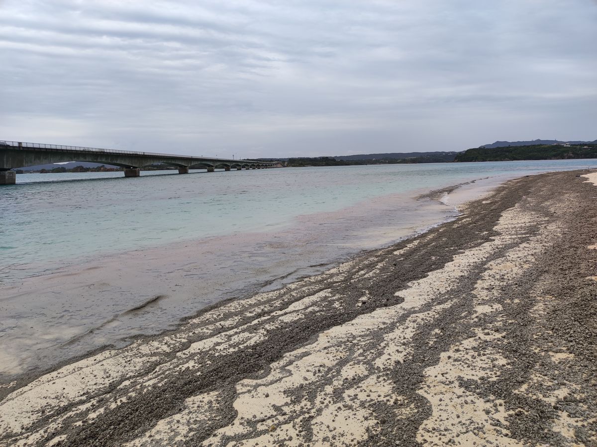 この時期ならではの軽石の風景も見られ、古宇利島では地元の人が軽石撤去の作業に取り組む姿に頭が下がる思いでした。