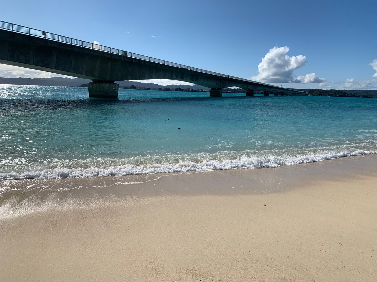 特に古宇利島のビーチは白い砂浜と青い海が、これぞ"沖縄の海"といった感じで、とてもキレイでした。本島との間にかかる橋からはとてもキレイな写真を撮ることができました。