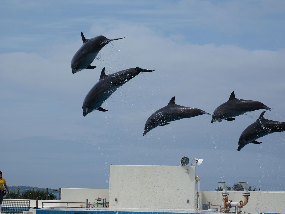 美ら海水族館では見どころであるイルカショーおよびジンベエザメの餌やりの両方が見れるようにスケジュールが組まれていました。