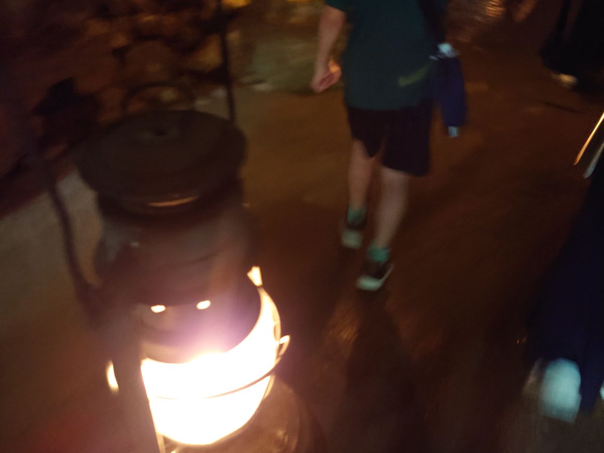 聖なる壺の説明を聞いてはいた時に、上の鍾乳石から水滴が落ちてきました。妻はとても感動していました。