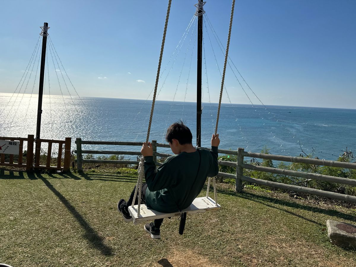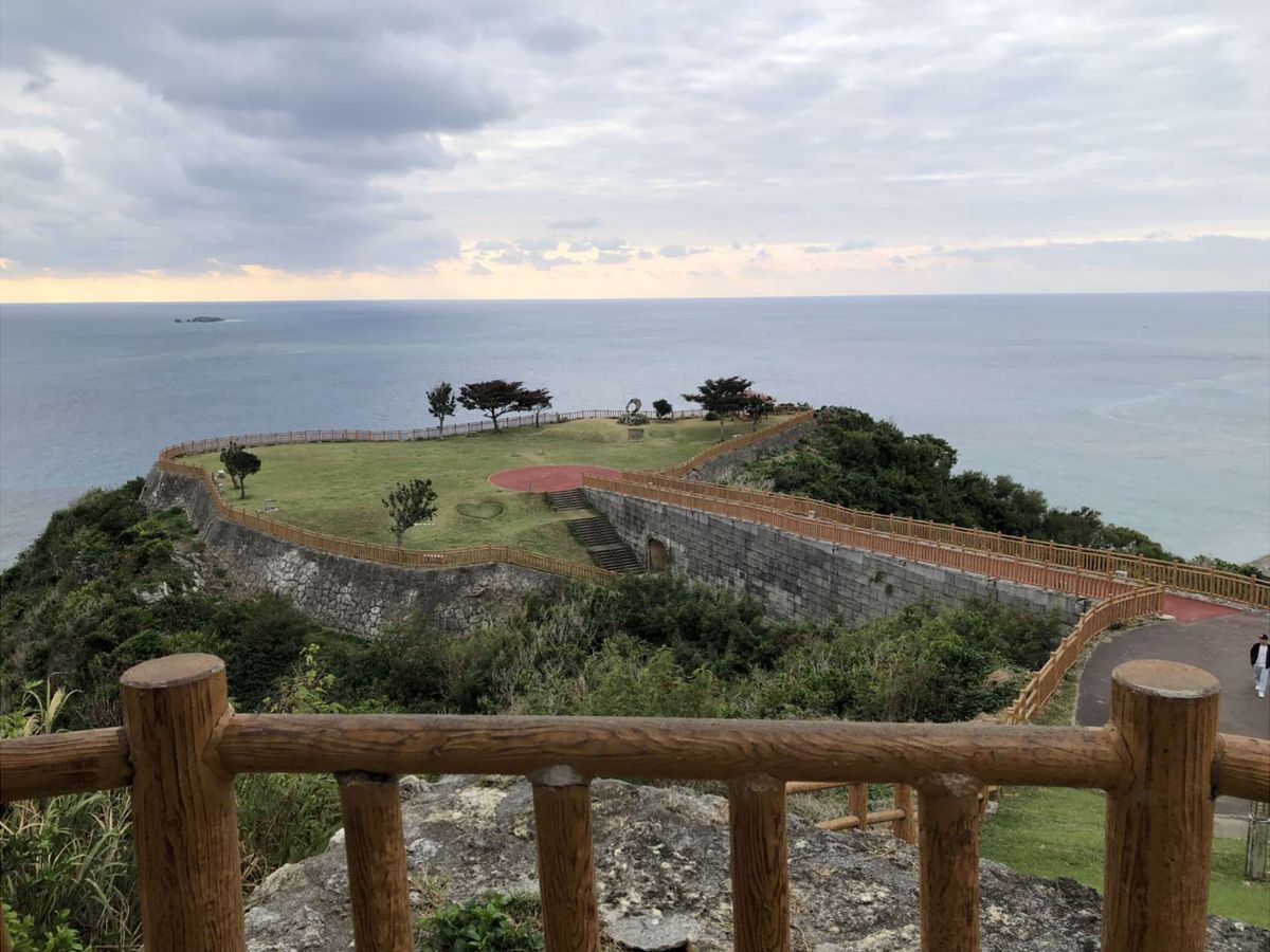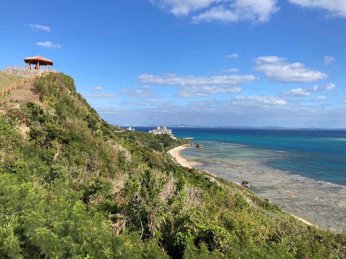 知念岬公園は眺望抜群、太陽の具合で異なる色の海を楽しみました。