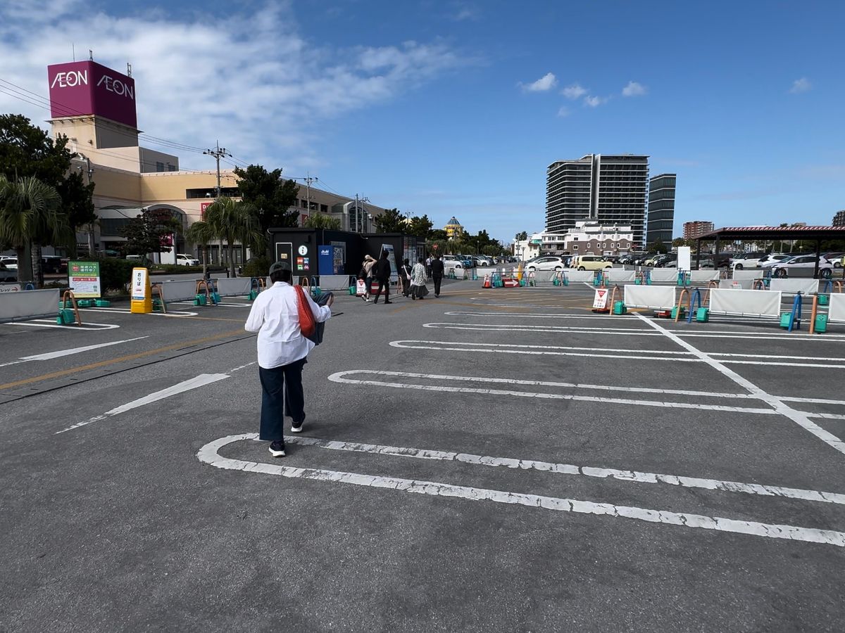 アメリカンヴィレッジでは200m以上5分位離れた駐車場に降ろされる。