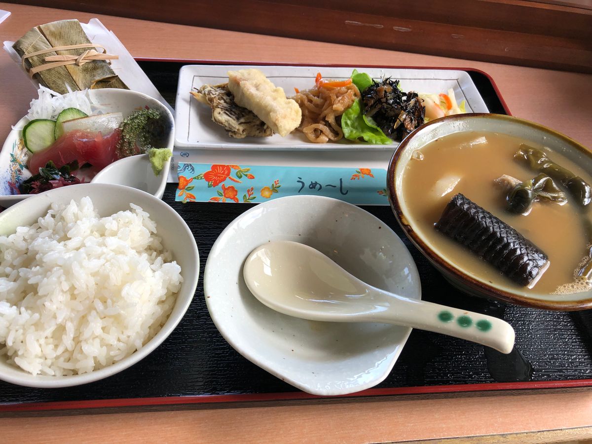 お昼休憩は南城市道の駅の2階レストランで取りました。種類はいろいろあり、フリードリンクでした。