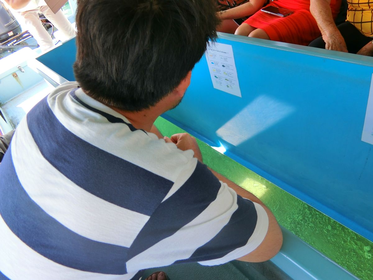 新原ビーチのグラスボード、たくさんのお魚が見れて感動です。