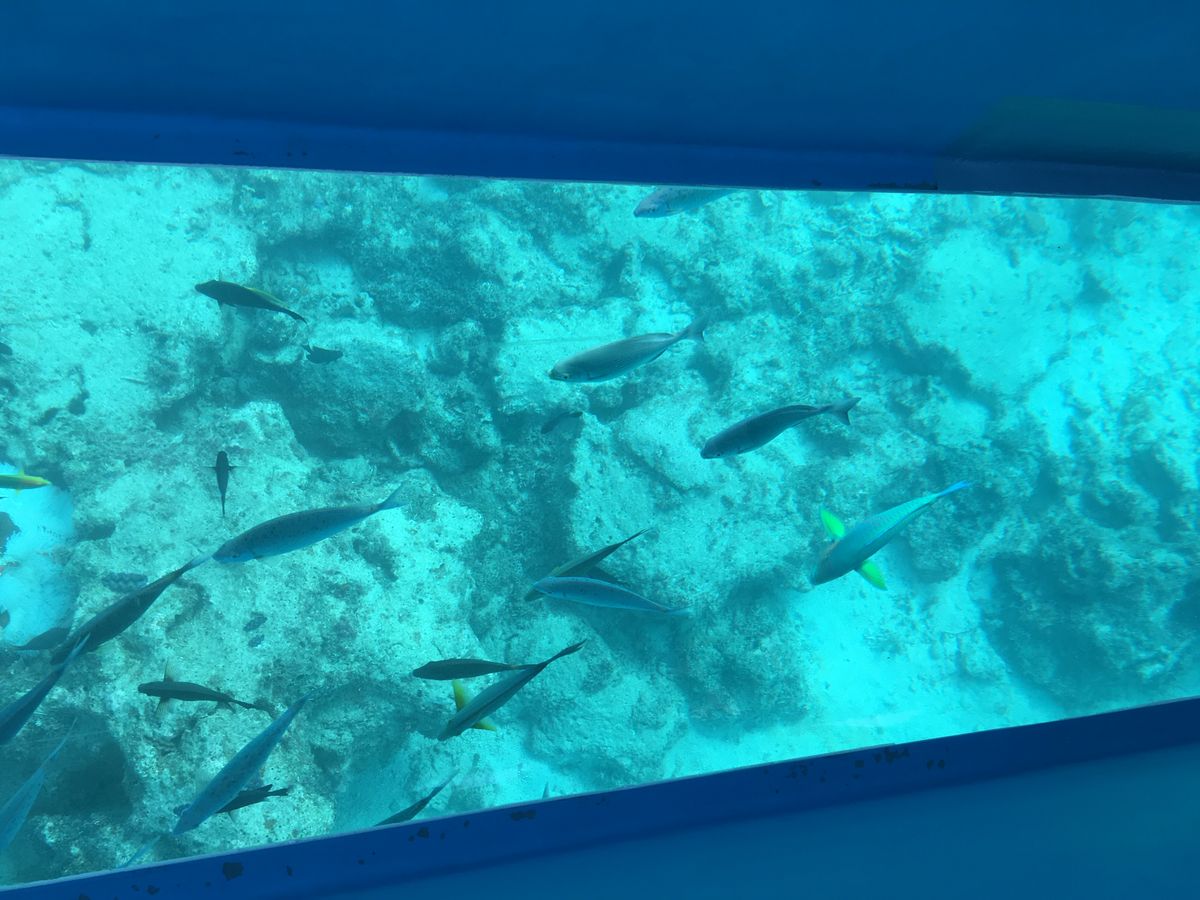1泊2日での沖縄の2日目。搭乗便が15時台でしたので、ホテルでゆっくり過ごすか迷いましたが、せっかくの沖縄でしたので有効に過ごそうと思い、集合時間が比較的早いプランでしたが予約しました。斎場御嶽後は選択ができるプランで、お天気が良かったので海を選びました。ガイドさんからいただいた割引券を使いグラスボートに乗りました。お客さんは2人だけの貸切状態で、船の運転手さんとの会話も楽しかったです。空港で下車して昼食を食べお買い物もできました。観光、空港下車とお得な料金でした。