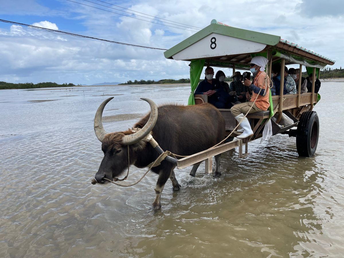 西表と由布島の間を往復お客様を運ぶ水牛車は、これぞ八重山観光!!という感じで、一度は体験していただきたい観光です。