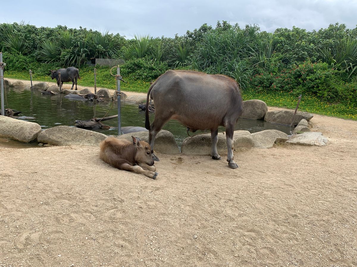 人を運ぶやら、モデルをする美人の水牛さん。また、赤ちゃん水牛までも。