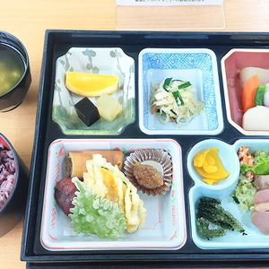 昼食の席で、牛丼や、そば、カツ丼ものの一品があったのは助かりました。