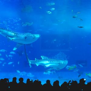 美ら海水族館では見どころであるイルカショーおよびジンベエザメの餌やりの両方が見れるようにスケジュールが組まれていました。