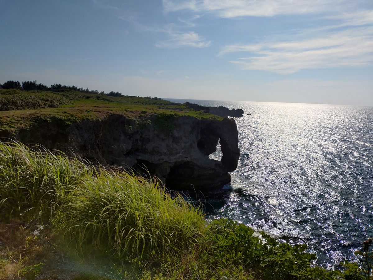 あいにくの雨模様でした。万座毛まではもちましたが、楽しみにしていたパイナップルパークと古宇利島はどしゃ降りでした。幸い折り畳み傘を持っていて助かりましたが、雨具がなかったら大変なことになっていました。