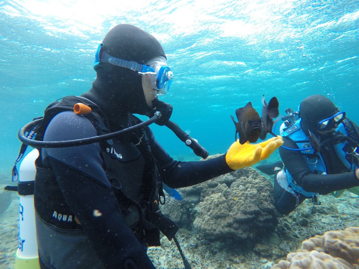 インストラクターがずっと付いてくれていたので安心してダイビングできました!青の洞窟はとても綺麗で、お魚エサやりはとても楽しかったです。