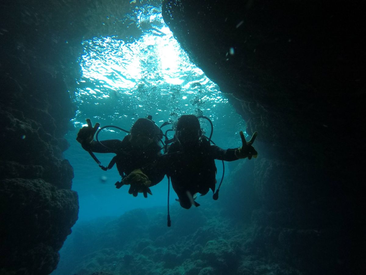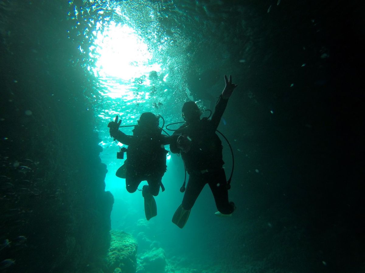 夫婦で初ダイビングにチャレンジしようと申し込みしました。海で泳ぐのも久しぶりだった私はとても緊張していたのですが、最初の説明から親切に丁寧に教えてくださり、なんとか海の中へ入ることができました。海の中でも全然インストラクターさんの手を離せなかったのですが、ずーっとフォローしながら青の洞窟まで連れていってくれ、とても素敵な景色を見せてくださいました。夫はライセンス取得の話をお伺いするくらいダイビングに魅せられたようです。