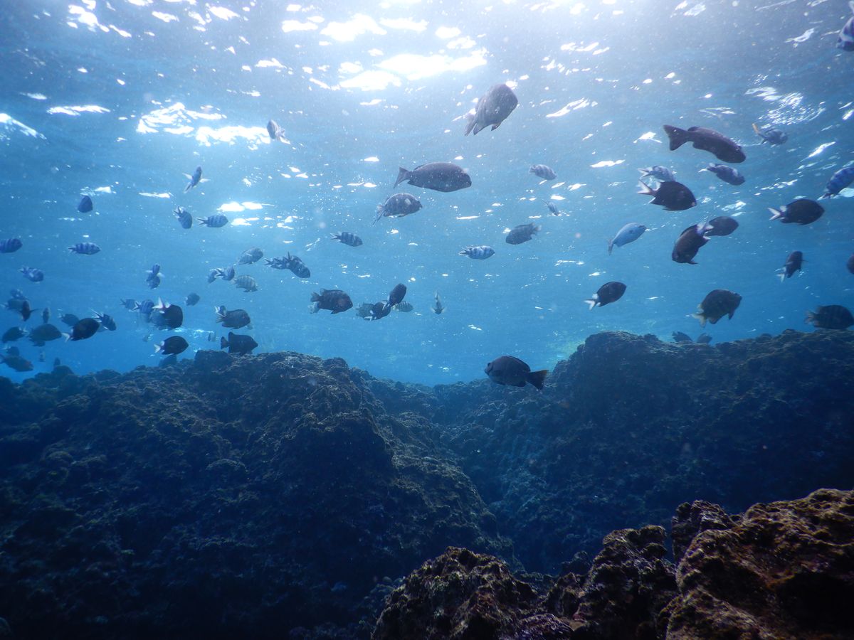 いざダイビングという時にさっきまでの雨が嘘のように晴れ間が現れ、海の中から見る太陽の光はたくさんの魚と合わさってとても美しく、感動しました。