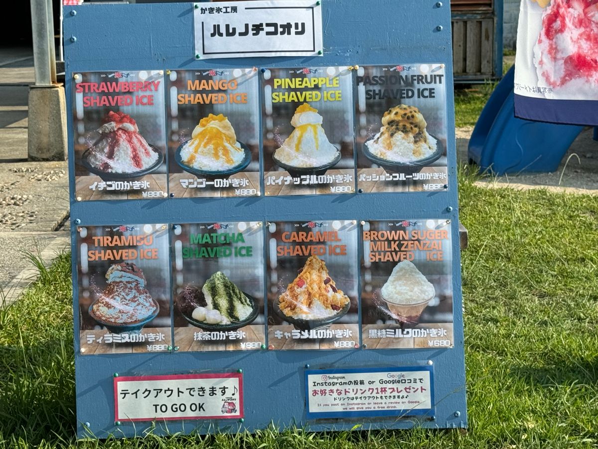 たっぷり、ダイビング満喫したあとは、シャワーを浴びてから、隣にある"ハレノチコオリ"でフワフワで美味しいかき氷を満喫❗️