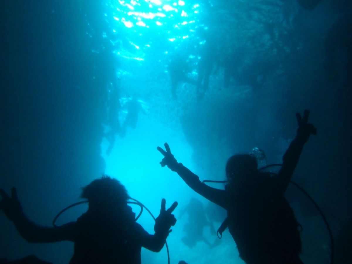 前日にシュノーケリングは体験したもののダイビングは全くの初めての状態での参加です。2人参加で1人の女性インストラクターKさんが担当してくれました。船ではなく岩場からのアプローチのため、ボンベを背負って足元が不安定な所を歩くのは大変でしたが、足のつく海での酸素マスクをつけての呼吸の練習などを安心してできたので、初めての人には岩場からのアプローチをお勧めします。最初酸素マスクをつけて顔を水につけたときはうまく呼吸ができずにもしかしたらダイビングできないかもと不安になりましたが、インストラクターKさんの丁寧な指導により次第に呼吸もできるようになり、気がついたら青の洞窟まで行くことができました。途中には何度も耳抜きの合図や問題ないかの確認などすごく丁寧に気をかけてくれて安心して泳ぐことができました。ダイビング中には冗談も交えすごく楽しく過ごすことができました。戻りのときは彼女の方がボンベも背負って岩場を登ることができそうにないと判断し、インストラクターKさんが自分のボンベのほかに彼女のボンベも背負ってくれました。すごい笑 初めてのダイビング、とっても楽しかったですこれ以上ないくらいの素敵なインストラクターさんのおかげだと思います。お勧めです!