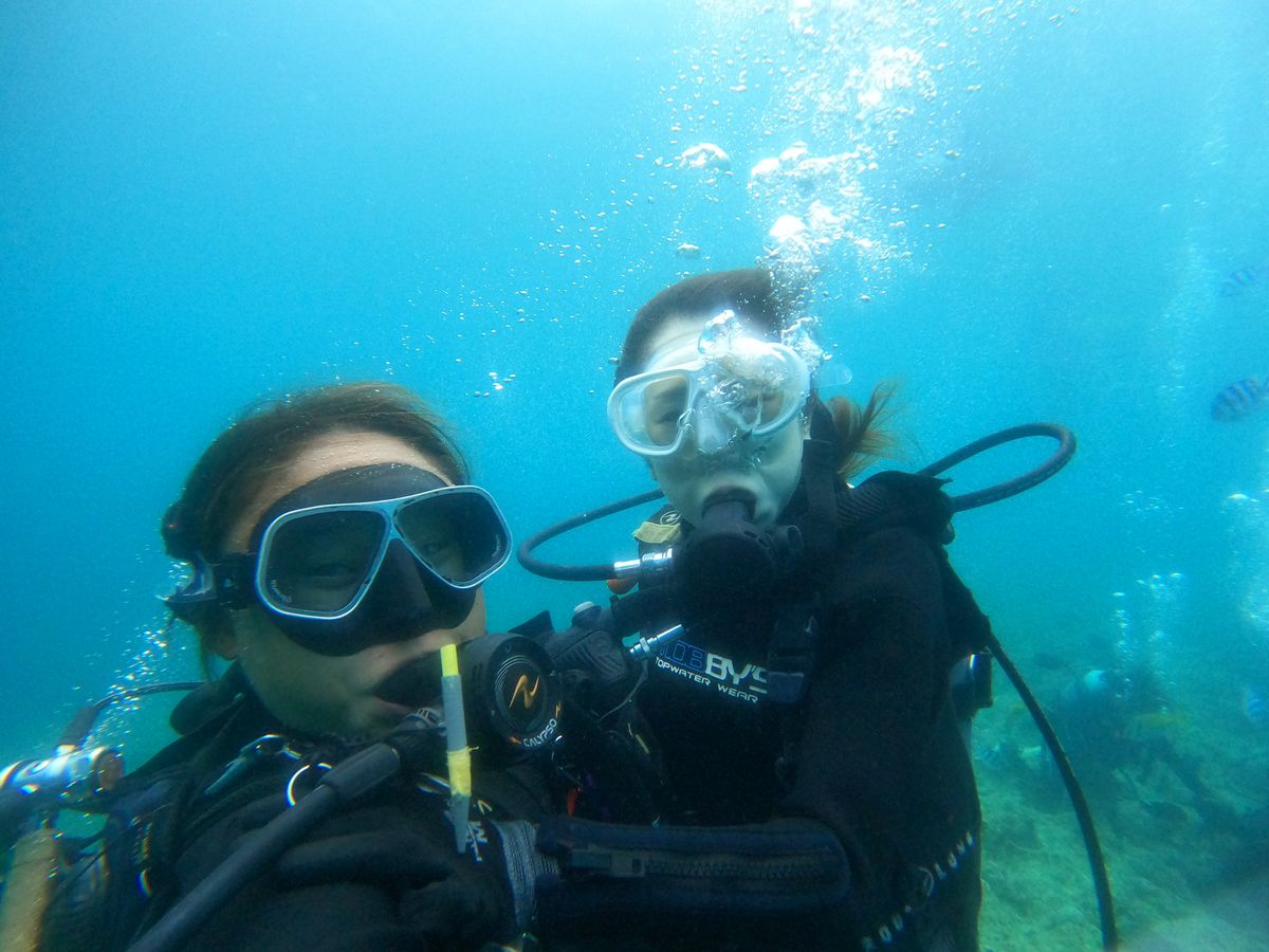 ダイビングは初めてで凄い緊張しましたが、教えていただいた人が凄い優しく教えてくれたので最後は楽しかったです。ただ機材が重すぎて海から上がって歩く時めっちゃしんどかった笑