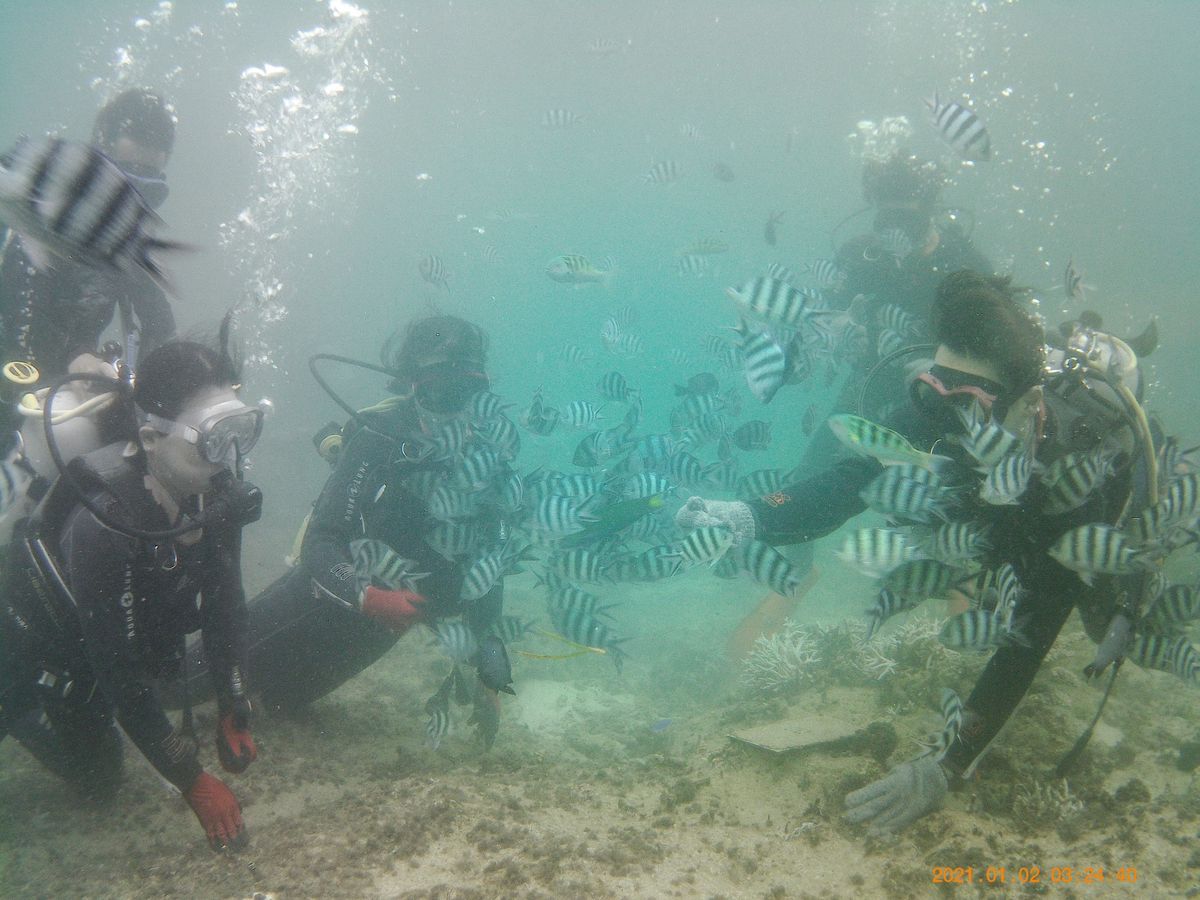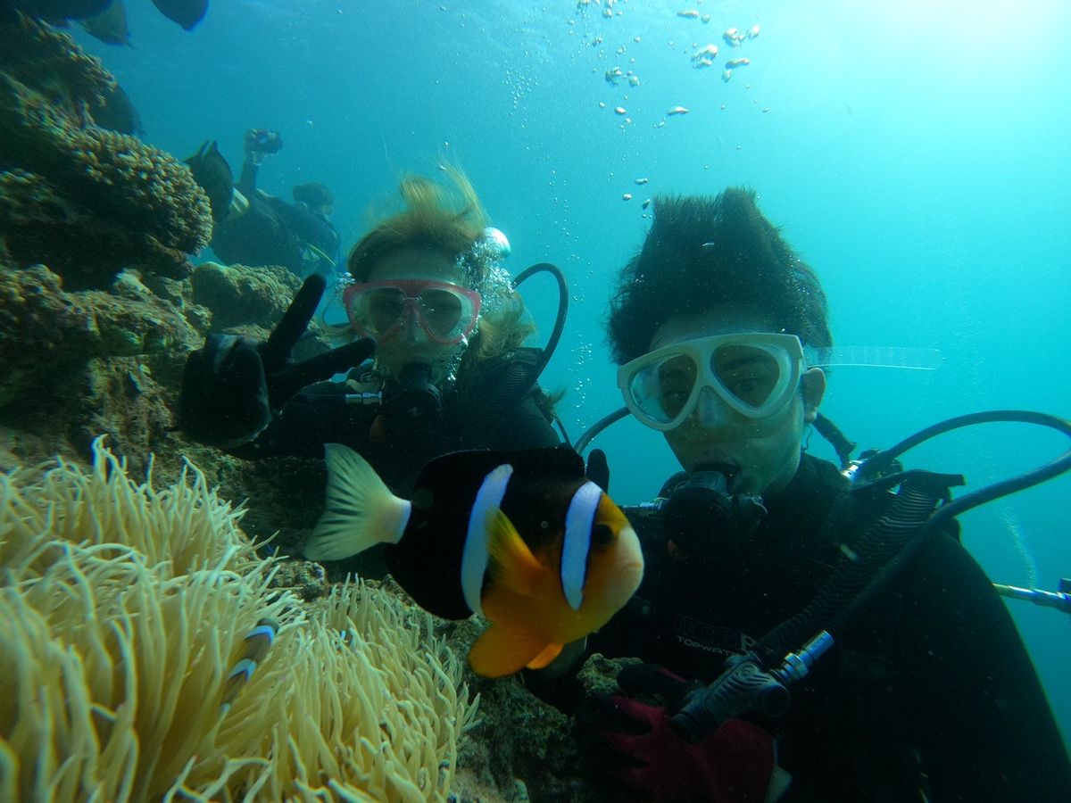 ダイビング体験直前に、実際に顔を海につけて呼吸の練習をします。その時私は非常に苦しく「これは潜れねぇ」と思ったのですが、インストラクターが優しくレクチャーしてくれたおかげで、なんとか海に潜れました。その後は非日常の幻想的な世界が広がった海の中で、魚と戯れたり写真撮影をしたりと最高の時間でした!