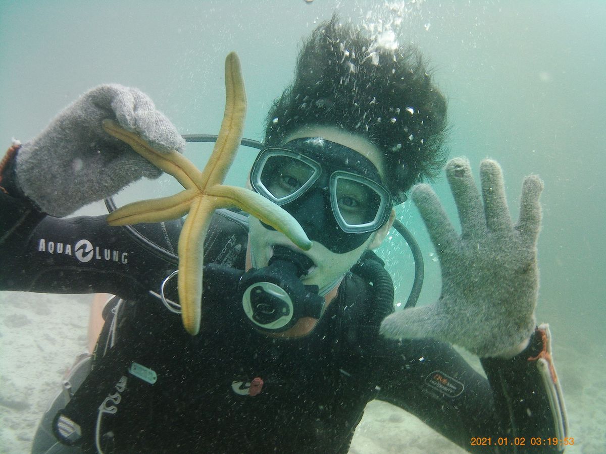 梅雨時ということで始まる前は不安でしたが、水温も暖かくなり始めた頃ということで潜りやすかったです。