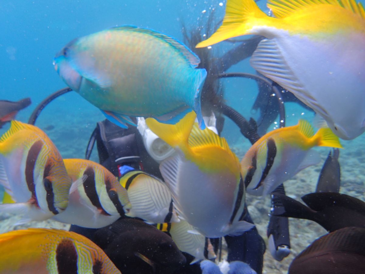 この後は熱帯魚の大群に囲まれて僕もびっくりでした(笑)