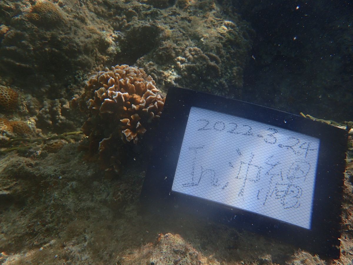2回ダイビングをするコースに参加したので、1回目は天然のビーチに行き、浅瀬でダイビングの練習をしました。天気がとても良かったこともあり、海水の透明度は抜群、魚も想像を遥かに超える数でした。また水中では、インストラクターの方がボードに文字を書いて案内等をしてくれます。