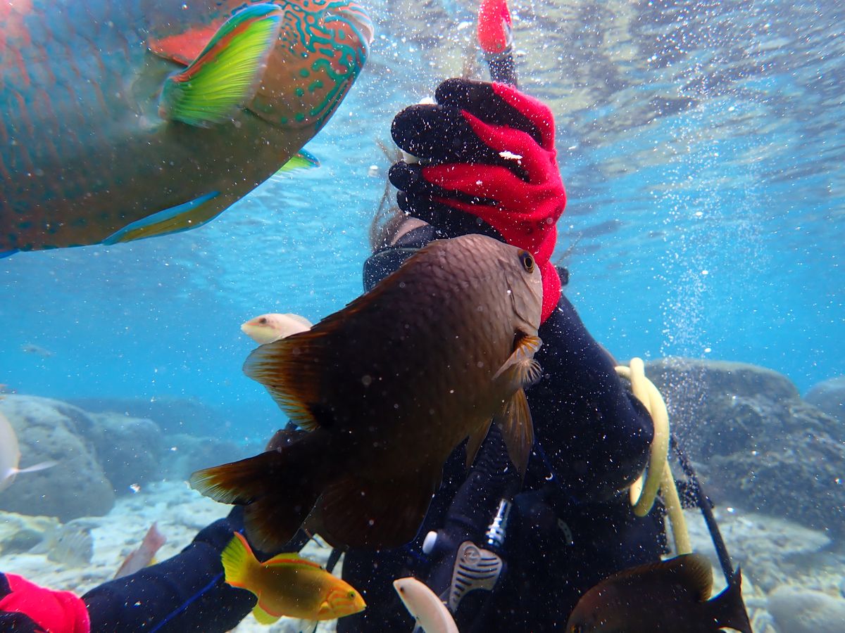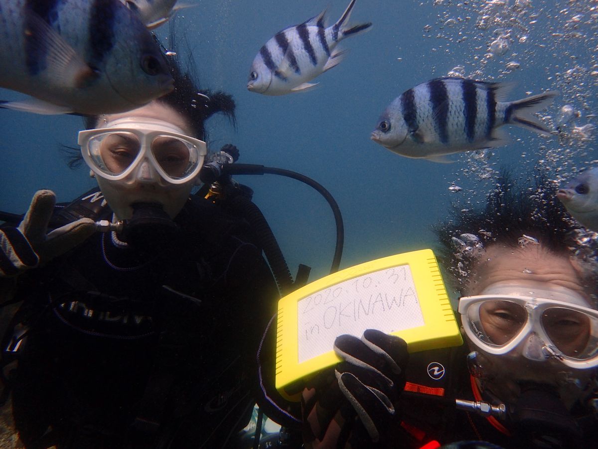 久しぶりの体験ダイビングは最初緊張したものの、安心できるようガイドしていただけました。透明な海の中ではびっくりするぐらいたくさんの魚が集まってきて、最初の緊張も忘れて楽しい時間を過ごせました。沖縄の海は最高ですね!