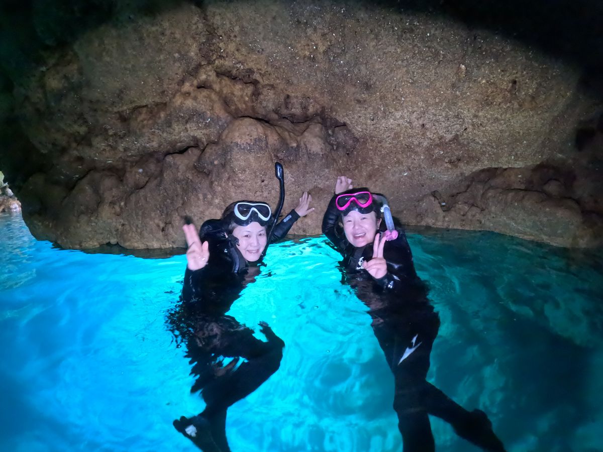 早起きして朝一の体験良かったぁ。貸切の青の洞窟、人がいないからか魚の群れも見られて、水族館にいる気分になれました。雑誌で見るような写真もたくさん撮ってくれて、素敵な思い出になりました。またたいけんさせてただきたいです。