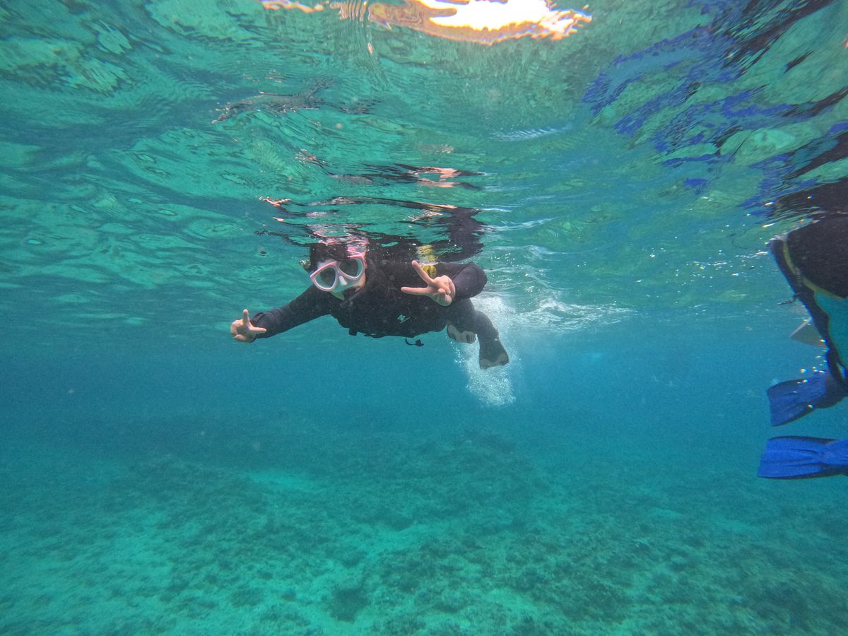 家族4人で参加しました。風が強くて代替えの大崎ビーチとなりました。子供達(10代)にとって初めてのシュノーケリングで、泳ぎも得意ではなくて不安でしたが、クロエさんの細やかな声かけとヘルプのおかげで安心して楽しめました。青の洞窟ではなかったけれど、海の中は本当に綺麗で感動しました。娘はシュノーケリングが一番楽しかったらしく家族の最高の思い出になりました。ありがとうございました。