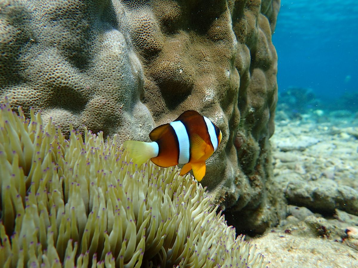 海にはクマノミなどの魚がたくさんいて、シュノーケリングを楽しめます。