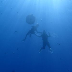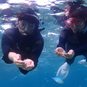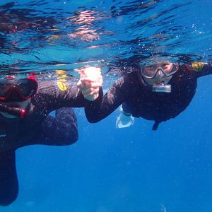 まず、前日の夜の予約にもかかわらず受け入れていただいてありがとうございました。12歳と10歳の子供と一緒にできるところを探してました。家族4人で泳ぎも得意でない海で泳いだこともない私たちに本当によく指導してもらいました。陸での説明の時にずっとボンベで呼吸してくださいと言われた時はさすがだなと思いました。あれで、だいぶやり方はわかったと思います。子供は1人途中で鼻血を出したり、1人は見事に海水を飲み込んでしまい、一回浮上したり。これは途中終了かなと思ったんですが、なんとか続けていただき、後半にはみんなかたちになってきました。ちゃんと潜らせてもらい、魚の餌づけ体験もさせてもらい、水中写真や動画まで撮ってもらって。本当にありがとうございました。みんなで筋肉痛で苦しんでいますが、素晴らしい体験ができたと思います。