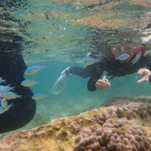 家族での2回目の沖縄旅行で初めて参加しました。子供は初シュノーケリングだったので、ちゃんと出来るか心配でしたが、ガイドのお兄さんがとても丁寧に教えてくれたおかげで、リラックスして上手く出来ていました。青の洞窟はとても神秘的でしたし、魚の餌付けも楽しかったです。次回も是非参加したいです!