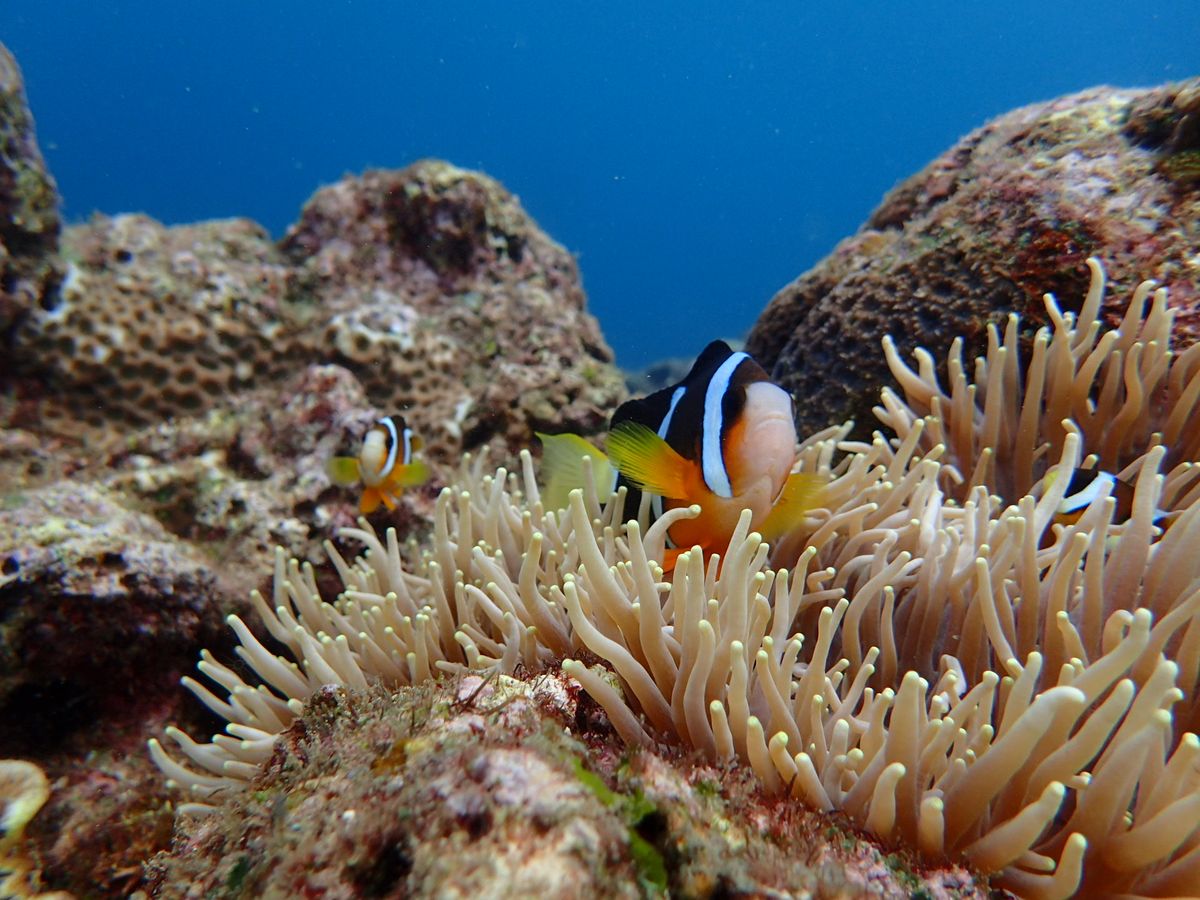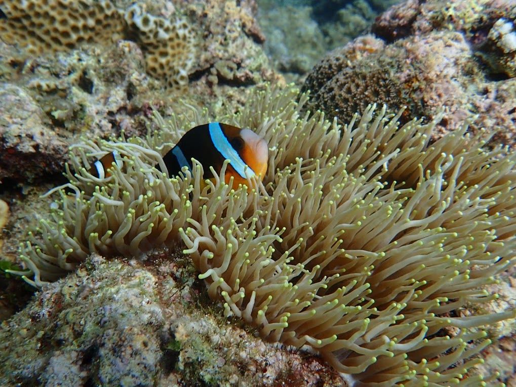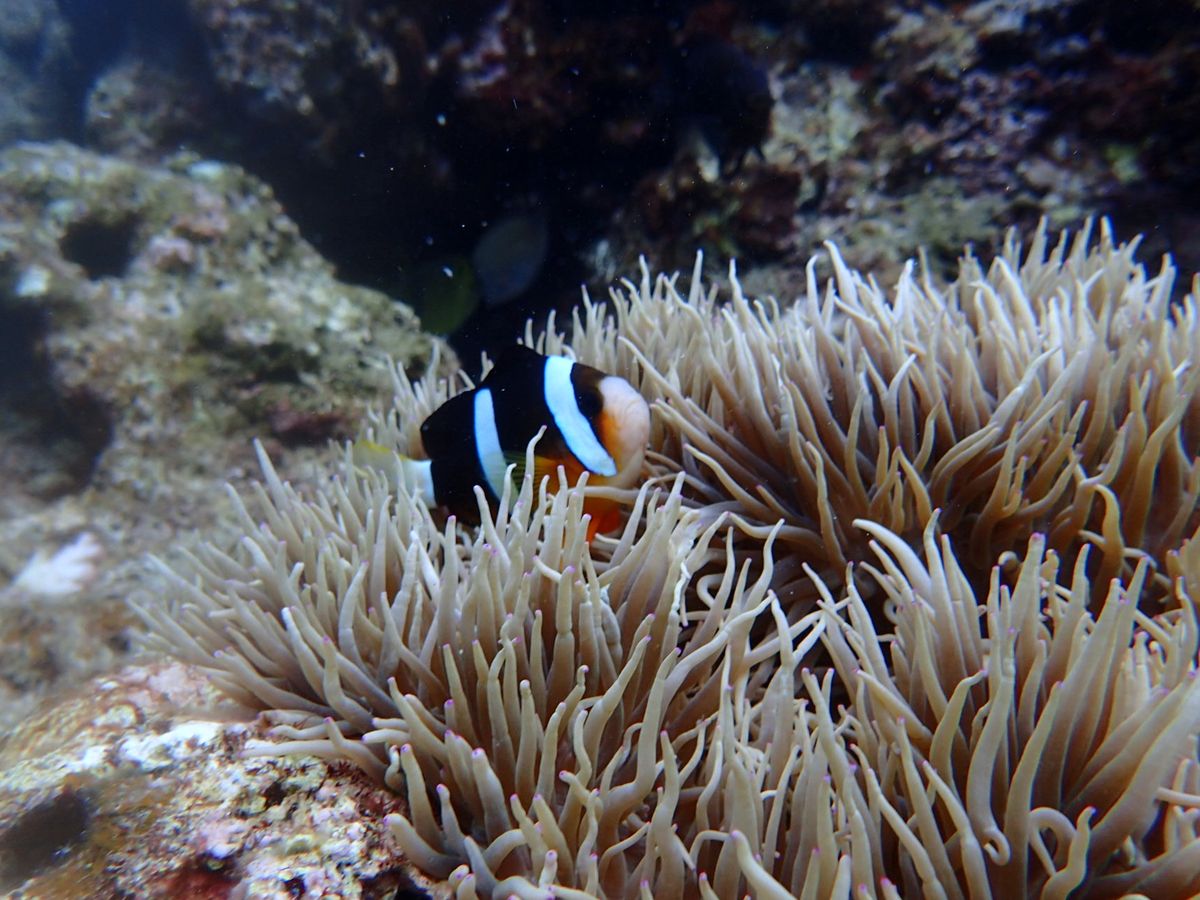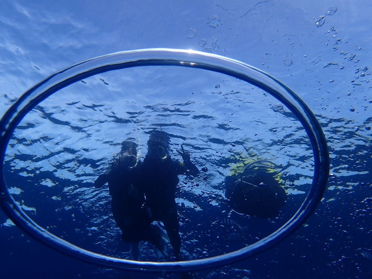 魚を呼んできてくれたり、ナマコやヒトデを見つけてきてくれたり、水中で空気をはいて◯を作って写真を撮ってくれたり、100%で楽しませてくださっているのを感じました。