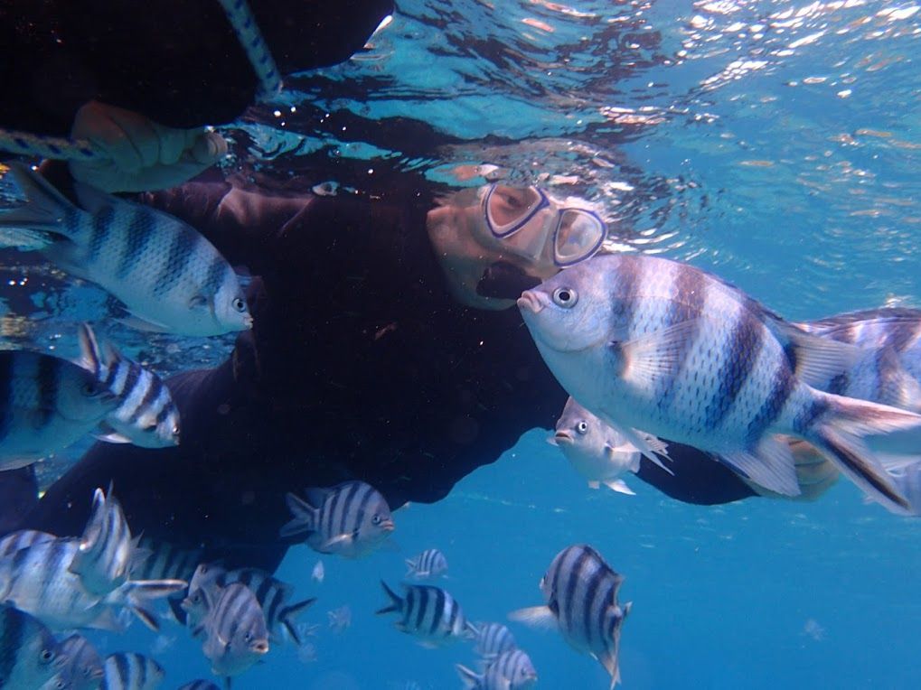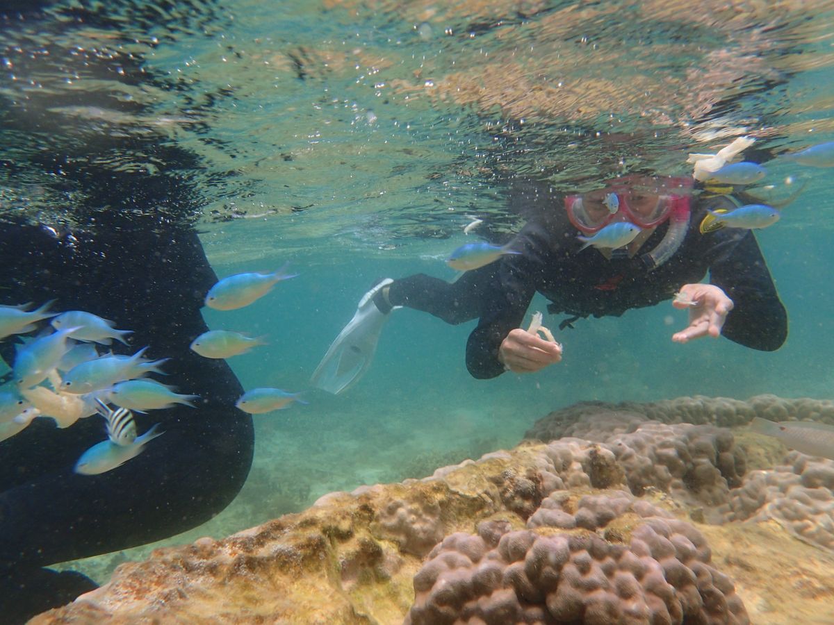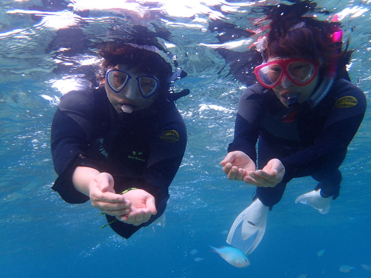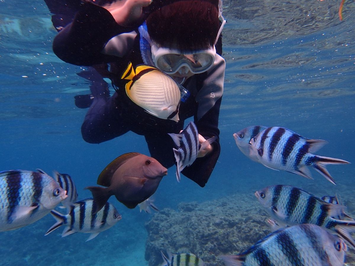 三姉妹を連れて家族5人で参加しました。海のコンディションも抜群で様々な角度から水中の自然光を観察し、その神秘な様に末っ子の幼児でも感動していました。ガイドの方は知識が豊富なだけでなく、幼い子でも楽しめるよう接してくれました。たくさんの熱帯魚と泳ぐことができ、夢のようでした。ショップの雰囲気もオシャレです。大満足でした。