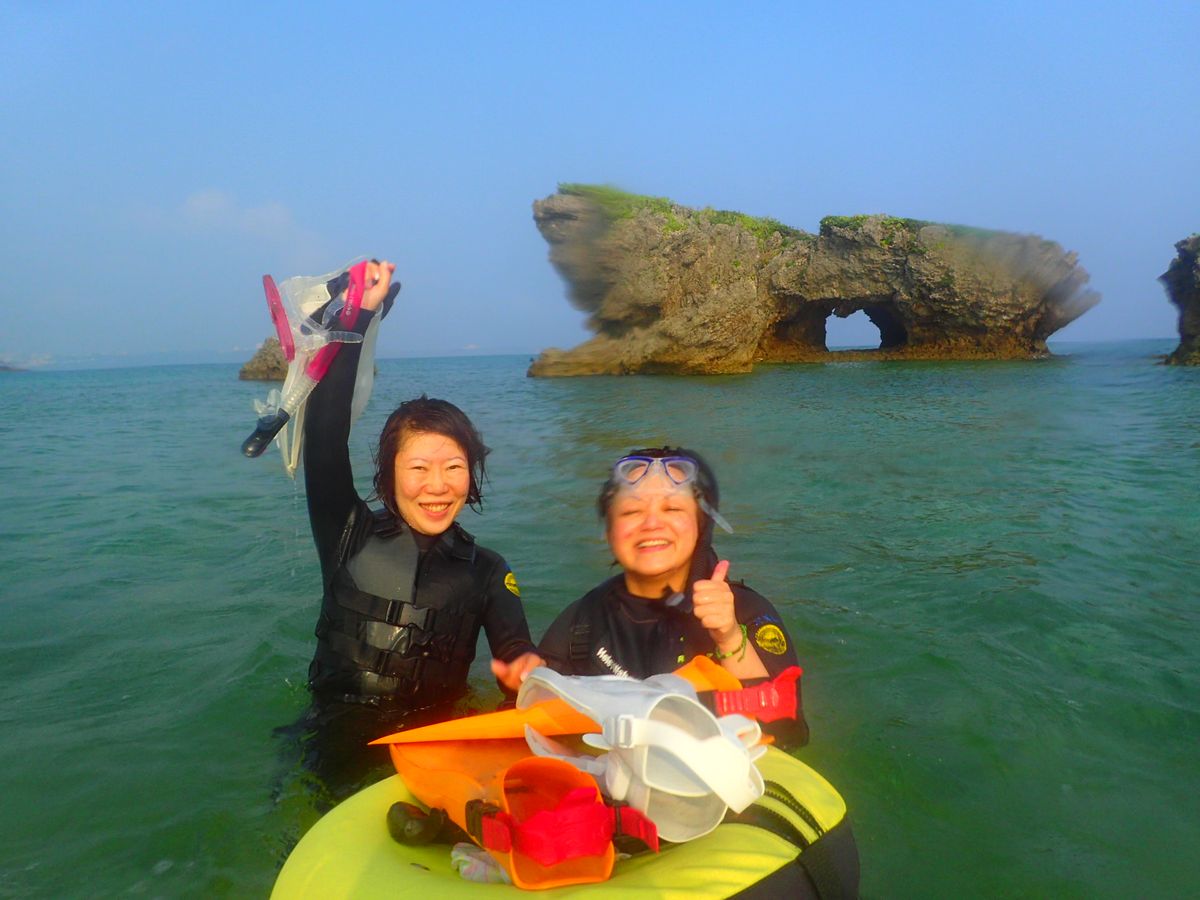 那覇に到着したその日に参加しました。真栄田岬は初めてでしたが、本当に水が綺麗で魚もたくさん見ることができました。ダイビングスポットで有名なところだったんですね。水面と海中でダイバーさんたちとすれ違うのが不思議な感覚でした。ちゃんと青の洞窟にも行くことができ、きれいな写真もたくさん撮っていただいて、すごくいい思い出になりました。青の洞窟、本当に素晴らしいところでした。自然の神秘って本当にすごいですね。ガイドさんは明るくて最後まで楽しませていただきました。無理しないでと終始声をかけていただいたので、体力と運動神経に自信の無い私もリラックスして最後まで楽しめました。何度も沖縄には来ているのにあまりこういうアクティビティはしてこなかったのですが、本当にやってよかったです。お世話になりました。