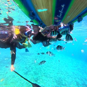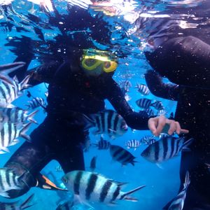 最初は海が怖かったけど、色々なアドバイスなど、丁寧に接してくれてとても良かったです👍最初は、魚など噛んでくるかと思い少し緊張して怖かったですが、アドバイスと共にエサもあげやすくなって海に入るのも平気になりました!真上から見ると見えないのに改めて中に入るととてもキレイな景色が見られました!楽しかったです♪貴重な経験ありがとうございました!!