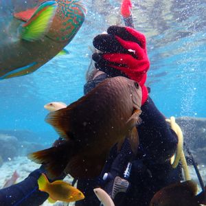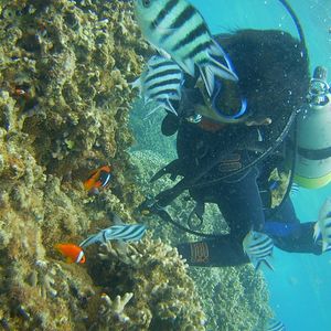 初めてのダイビングで友人が潜水した時パニックになり溺れかけてしまいました。ですが、ガイドさんの迅速な対応で落ち着きましたがそれでも恐怖心には勝てずリタイアしました。イレギュラーにも対処できるスタッフが揃ってます。はじめてのダイビングで不安な方でも参加しやすいと思います。それからGoProで写真も撮って頂きありがとうございました♪