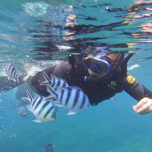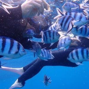あまりにも海のきれいさとお魚さんの人なつっこさに怖さを忘れ感動の連続でした。写真も沢山撮って頂きました。今までの人生で最高の感動を味わうことができました。冒険島さんは海からも近く貴重品ロッカー・シャンプー・リンス等備え付けられて良かったです。そしてインストラクターさんの優しさと笑顔が良かったです。また機会があったら行きたいと思います。有難うございました。