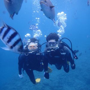 人生初のダイビングに緊張していましたが、インストラクターの方が丁寧に指導して下さったので楽しむことができました。波が高く青の洞窟まで行けませんでしたが、綺麗な海で魚と泳げて最高な体験でした!