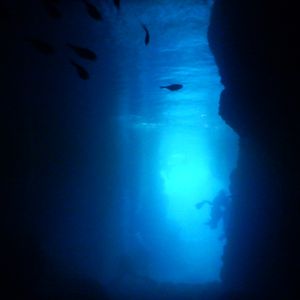 2月の波の高い時期でしたが、入ってしまえば寒さも感じないし、なによりも大量の魚が目の前にいて、びっくりしました。青の洞窟のあまりの青さにも感動しました。きっと思っているよりも青いと思いますよ。潜っている時間が一瞬に思えるほど綺麗です。