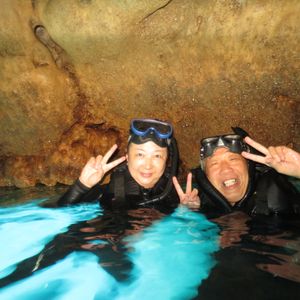 洞窟の青い景色と水中世界をゆっくりご案内できて、良かったです!