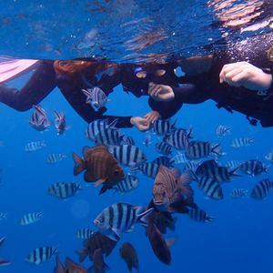 海潜りは怖かったですが、水面に顔をつけた瞬間テレビでしか見たことがないキラキラした青い世界が一面に広がり、とても感銘を受けました。