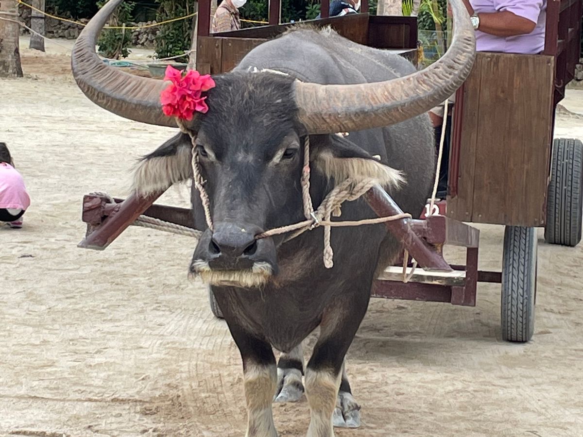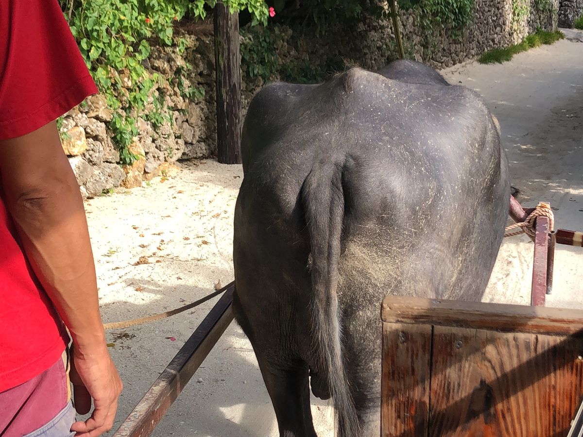"まぶやー”と言うマイペースな水牛さんで、途中休暇したり、放尿したり(笑)でもちゃんと内輪差を考慮して大回りするとても賢い水牛さんでした。