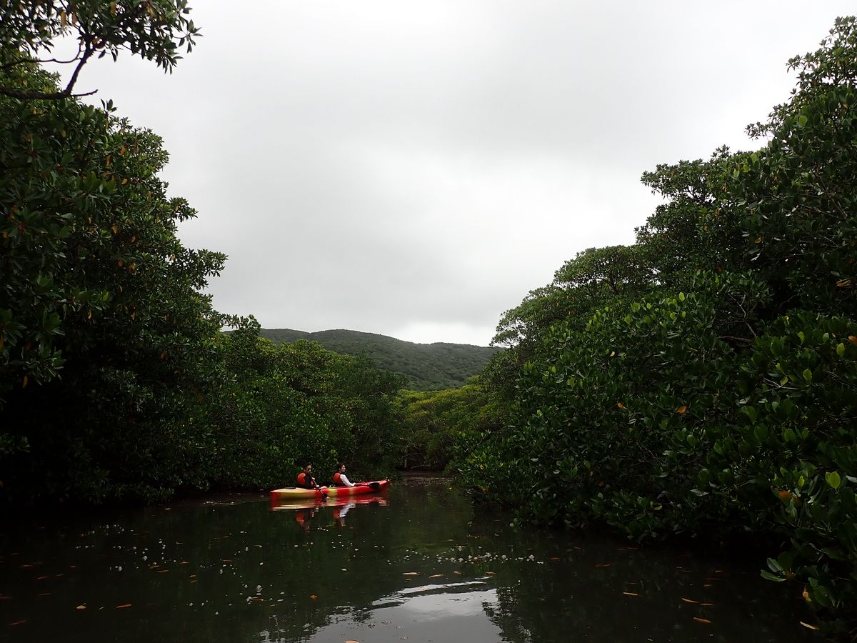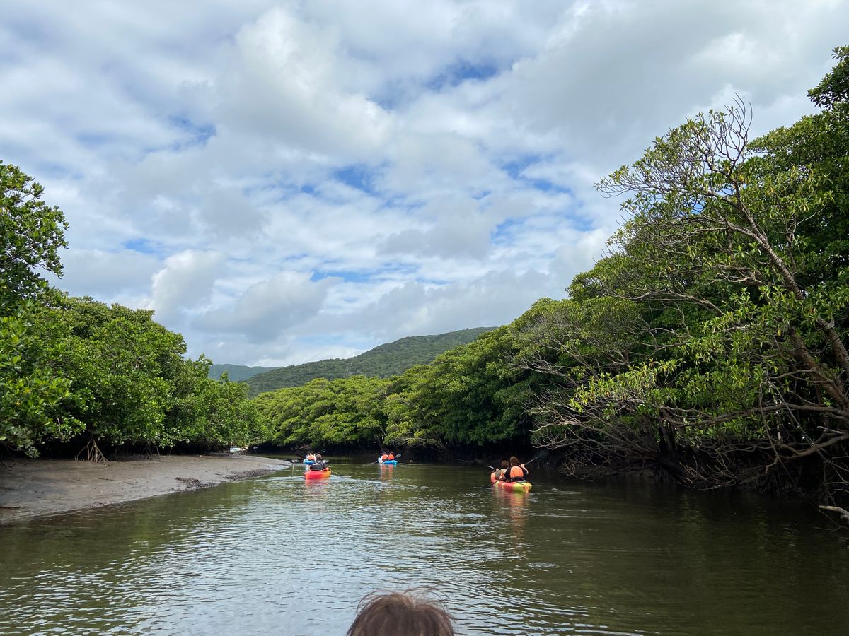 あいにくの雨でしたがカッパを着てカヌーを楽しみました。途中雨が強くなったり止んだりしましたがマングローブの緑に癒やされました。
