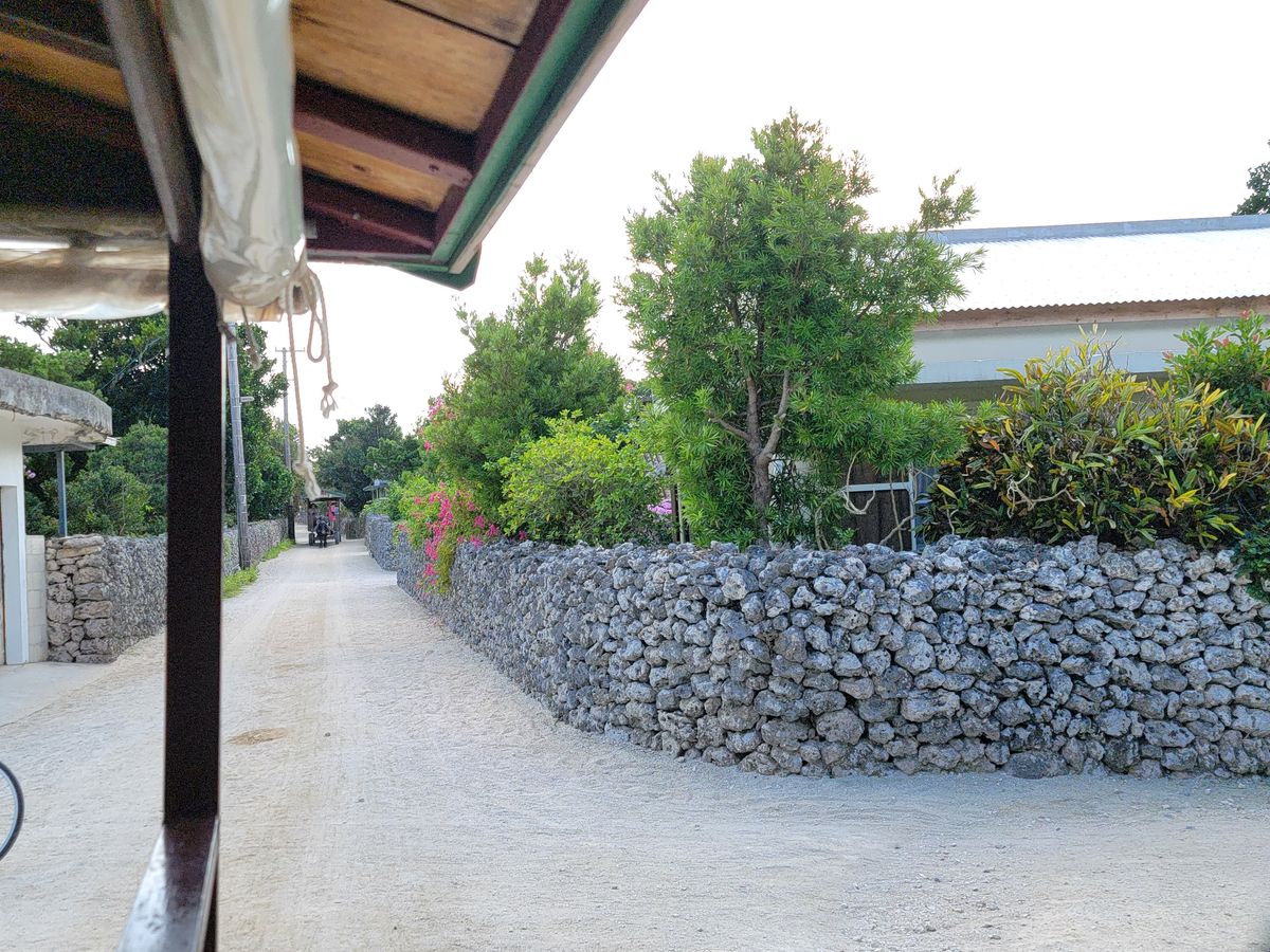 当日は13:00発の船で竹富島へ向かい、30分弱水牛車で竹富島の集落を案内してもらいました。帰りの船便までの残り時間は自由に過ごせるので、集落を歩いて散策していました。街並みを歩いて見て周るのも、1時間あれば十分です。