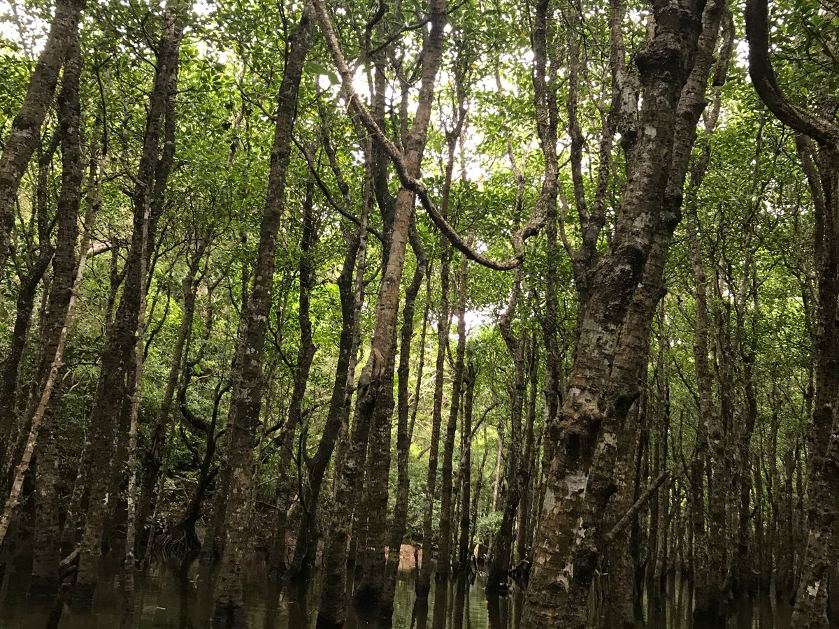 広い仲間川を見たときは どれだけ漕ぐのか 不安になりましたが 少し行くと マングローブの森の中へ。鳥のさえずり、水面の花、葉に反射する光……何もかもが別世界。不思議な空間でした。