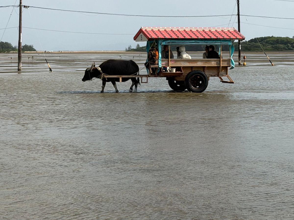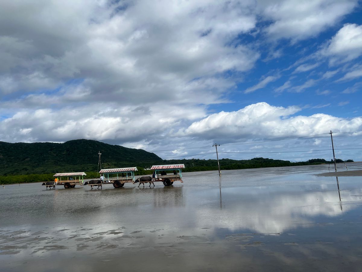 水牛に乗ってゆったりと海を渡ったり島を散歩する体験は、天気が悪くても多少寒くても、価値があると思います。