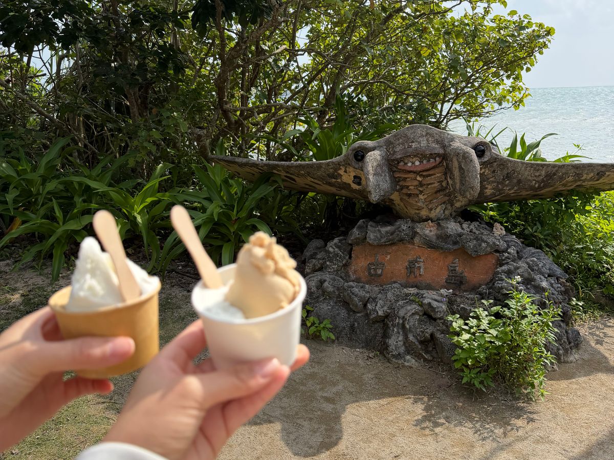その後は水牛車に揺られて由布島へ。由布島では唯一ふれあいできる水牛がいます!餌やり体験や、近くで写真も撮れます。ランチバイキングの後は、スタッフさん激推しの「由布島茶屋」でジェラートを堪能!これ、絶対食べてほしい…!