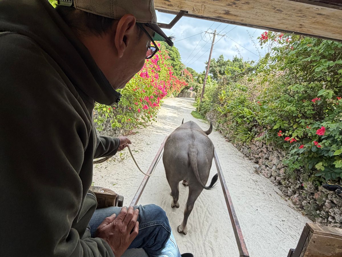 念願の水牛車とバギー体験: ずっと乗ってみたかった水牛車。三線の音色を聴きながらゆったりと海を渡る時間は、まさに想像していた通りの贅沢なひとときで、心から癒やされました。移動で乗ったバギーも、島の風をダイレクトに感じられてすごく楽しかったです!