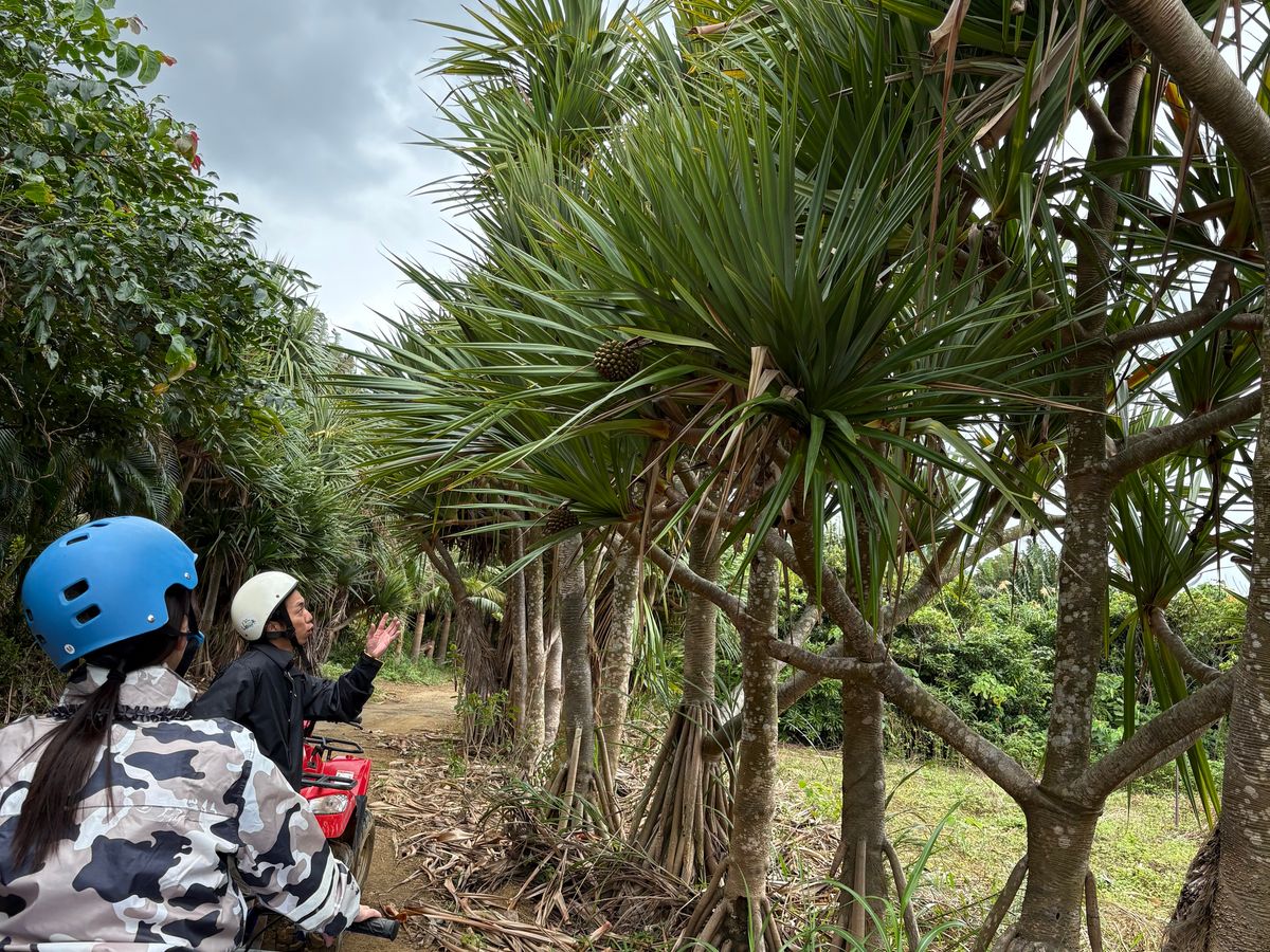 スタッフさんの後についてコースに出てからは、南国の背の高い植物の間を進み、途中その植物の説明をしていただいたり、写真を撮っていただいたり、とっても楽しくあっという間に時間が過ぎてしまい、もう少し運転していたいなぁ…と感じるほどでした。笑